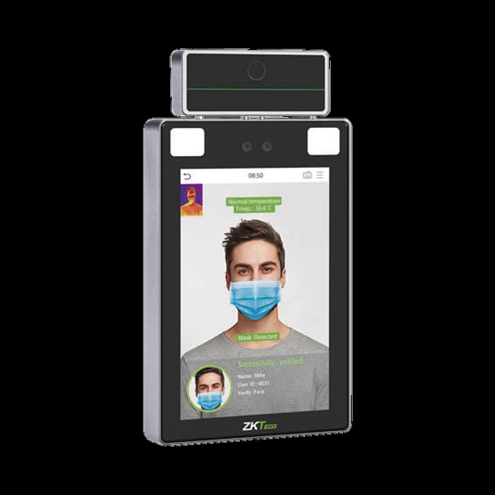 ProFace X [TI] es una versi贸n totalmente actualizada de la l铆nea de productos ProFace, que est谩 dise帽ada para hacer frente a todo tipo de escenarios. Desarrollado por la CPU personalizada ZKTeco para ejecutar el algoritmo de reconocimiento facial de ingenier铆a intelectualizado y la 煤ltima tecnolog铆a de visi贸n por computadora, ProFace X [TI] admite la verificaci贸n facial y de la palma con gran capacidad y reconocimiento r谩pido de velocidad, aumentando el rendimiento de seguridad en todos los aspectos. ProFace X [TI] tambi茅n ayuda a eliminar problemas de higiene; no s贸lo por la tecnolog铆a de reconocimiento sin contacto, si no a las nuevas funciones de la detecci贸n de temperatura corporal y la identificaci贸n individual con mascarilla. La capacidad de reconocimiento facial ha alcanzado una nueva altura en la industria de la tecnolog铆a biom茅trica con un m谩ximo de 50,000 plantillas faciales, velocidad de reconocimiento de menos de 0.3 segundos por cara y la capacidad anti-sabotaje definitiva contra casi todos los tipos de falsificaciones, ataque de fotos y videos. Adem谩s, el reconocimiento de palma 3 en 1 (forma de palma, impresi贸n de palma y vena de palma) se realiza en 0,35 segundos por mano; los datos de la palma adquirido se comparar谩 con un m谩ximo de 5,000 plantillas de palma. Como se mencion贸 anteriormente, ProFace X [TI] puede ayudar a reducir el riesgo de infecci贸n y propagaci贸n de g茅rmenes durante la reciente crisis mundial y problema de salud p煤blica. Permite la medici贸n r谩pida y precisa de la temperatura corporal y la identificaci贸n individual con mascara durante la verificaci贸n facial y de la palma de la mano en todos los puntos de acceso, especialmente en hospitales, f谩bricas, escuelas, edificios comerciales, aeropuertos, estaciones y otras 谩reas p煤blicas.
