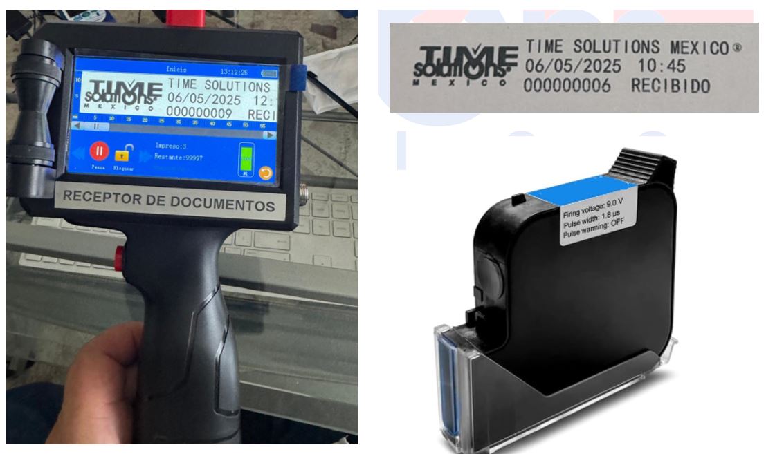 RECEPTOR CON LOGO, IMAGENES, FOLIO Y HORA